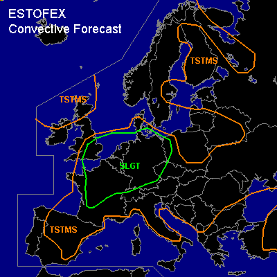 There is a slight risk of severe thunderstorms forecast across SE-England, and across the areas mentioned in the previous outlook